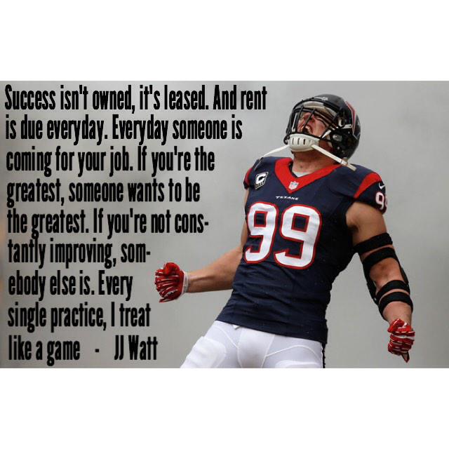 J. J. Watt Quote: “Success isn’t owned. It’s leased. And rent is