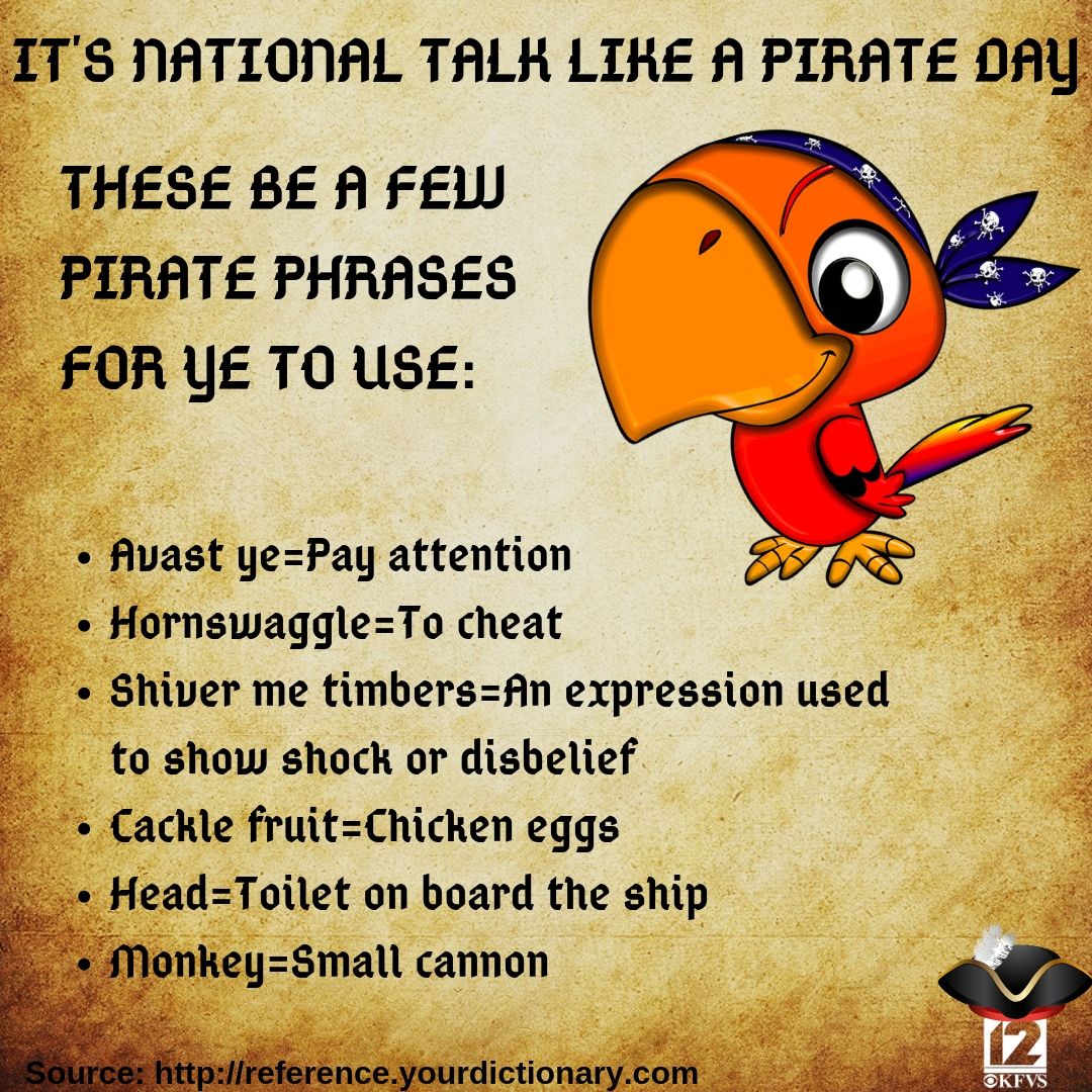 Talk Like a Pirate Day Party | Pirate day, Pirate words, Pirate talk
