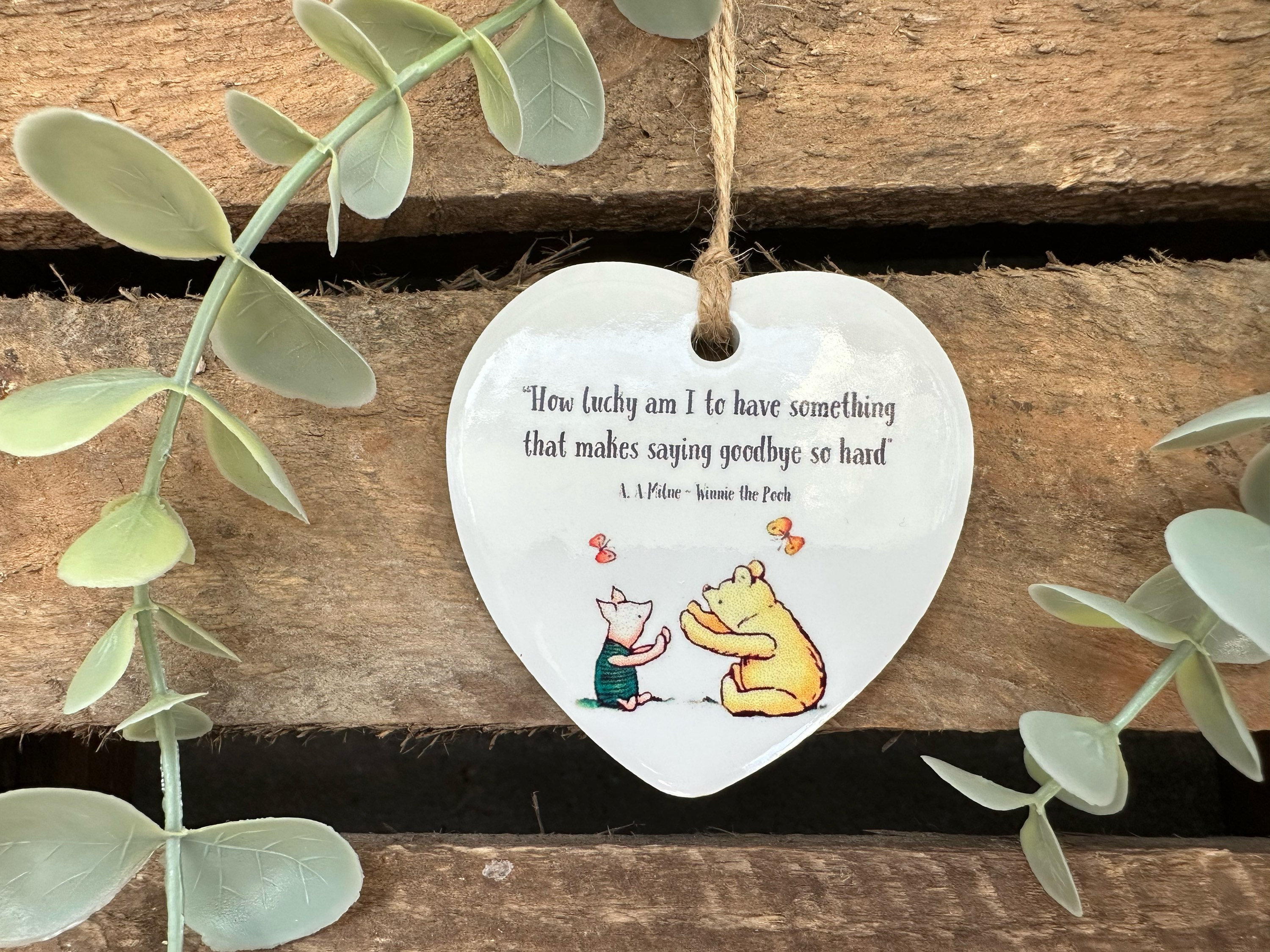 Sweet Winnie the Pooh goodbye Ceramic Heart Quote Decoration