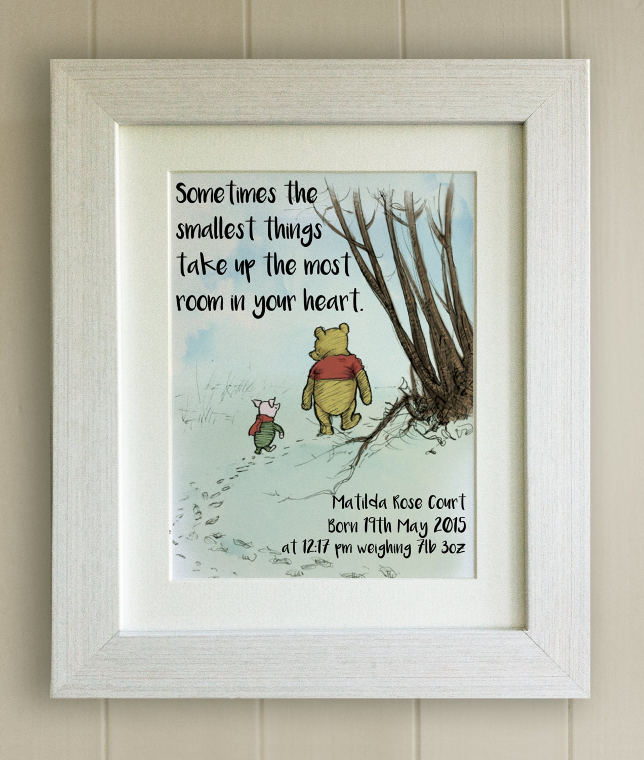 Personalised Winnie Piglet Pooh quote print frame A5 boy girl cute